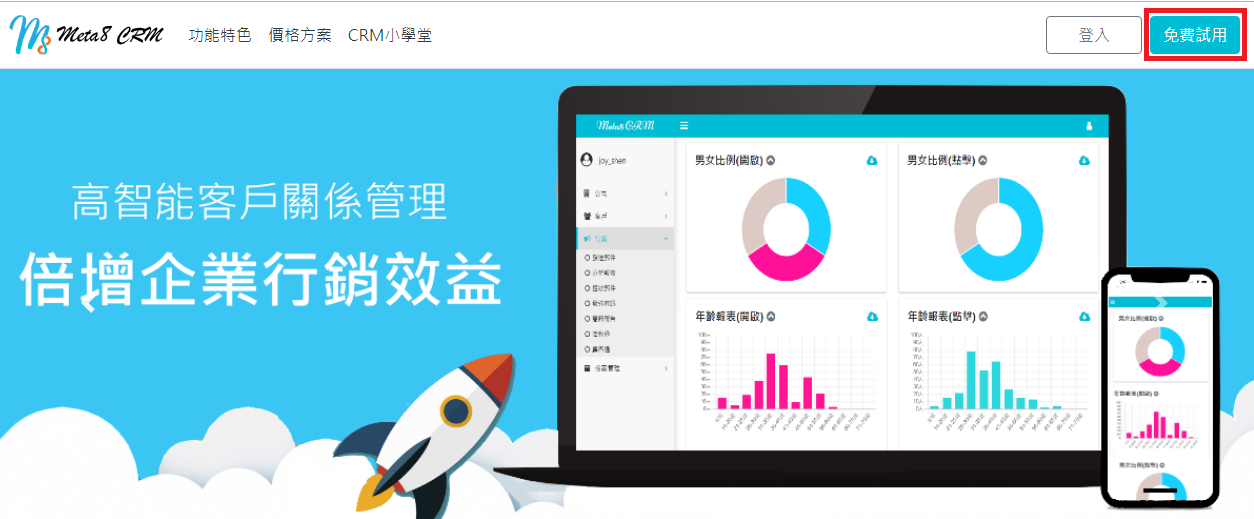 Meta8 CRM提供21天免費試用,4步驟完成申請,教學流程如下: