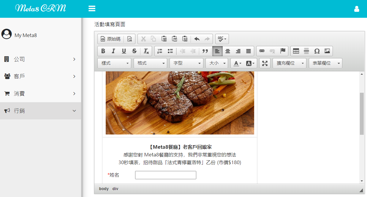 Meta8 CRM自訂活動表單:快速打造意見回饋表