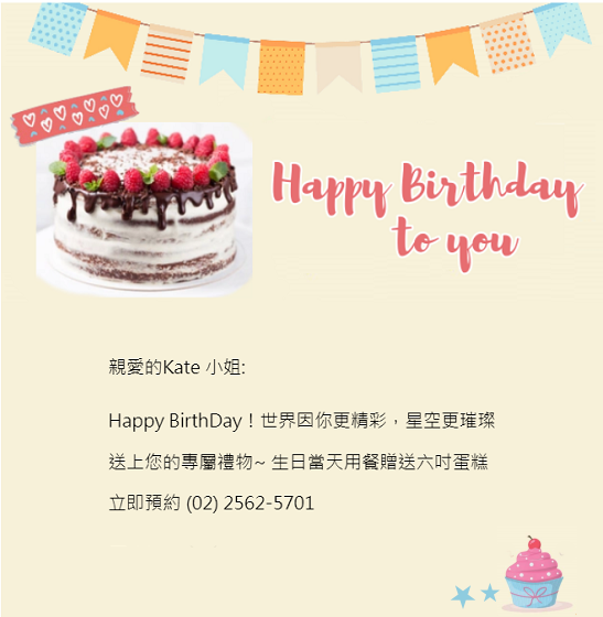 企業應致力於提高顧客價值,使顧客得到更高的滿意度。知名餐飲品牌「金色三麥」為其會員準備了驚喜,只要會員於生日當天來店慶生,即可享有六吋蛋糕。金色三麥此舉不僅吸收更多新會員,也為這些會員留下美好的回憶,同時提高了顧客價值。